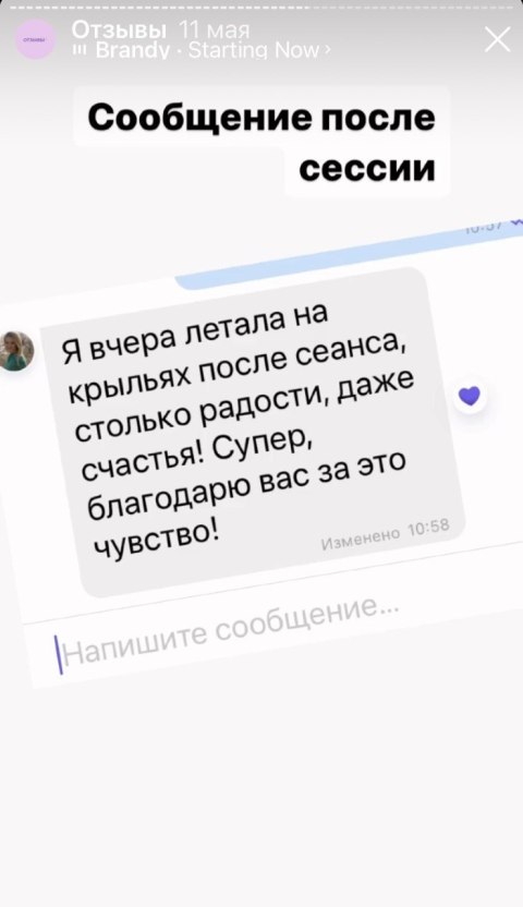 Применяя необычные приемы с мастерством профессионала помогла убрать и нейтрализовать ту боль, злость и обиду , что засела в теле и была камнем преткновения на пути к достижению целей и получения желаемых результатов. Мы вышли на ресурс и заякорили это состояние. Вышли на ощущения: целостности, уверенности и ценности себя.