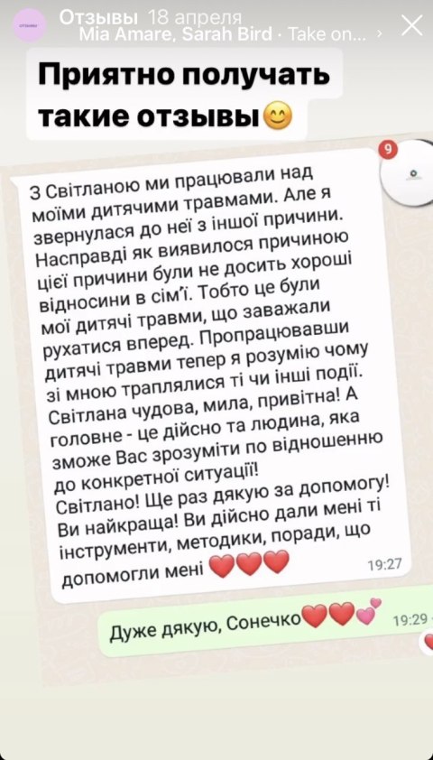 "Я искренне, от всей Души благодарю Светлану Лубянскую за проведенную со мной консультацию. Ее можно назвать - "исцеление детства". Светочка легко и уверенно вела меня, чувствуя , что мне нужно подсветить и исцелить.